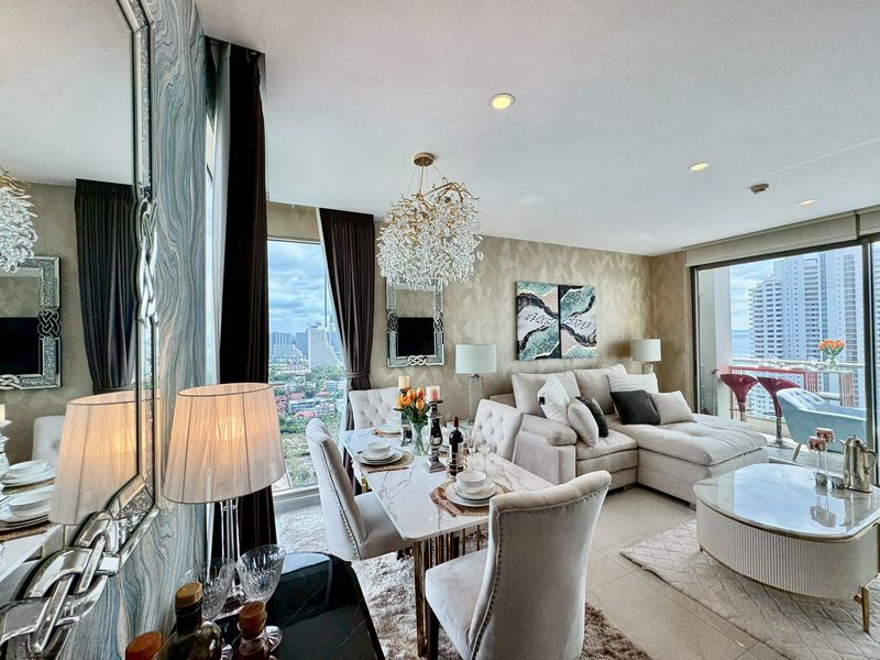 Presenting a luxury apartment in the Riviera Jomtien, a 46-story condominium completed in 2019 in Jomtien, Pattaya. This property features multiple pools, a gym, sauna, and children's area, located just 400 meters from the sea. The complex offers secure parking and is served by eight lifts across three buildings.
